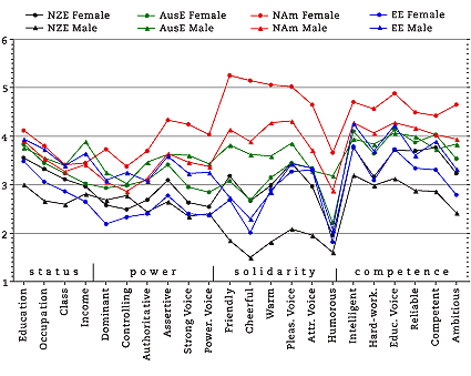 Except for the solidarity traits, the NZE male is more highly rated by the